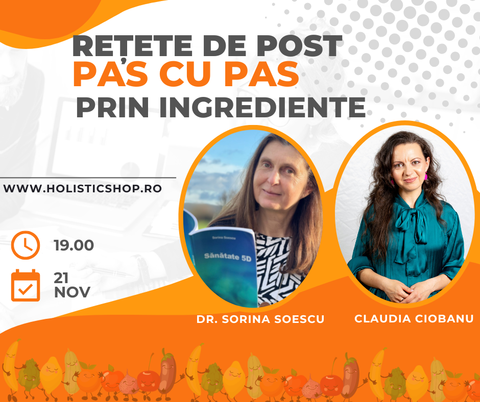 🎁 Bonus pentru participanți: un ghid practic cu „10 ingrediente esențiale pentru un post hrănitor”, pe care îl poți folosi ca inspirație în fiecare zi.